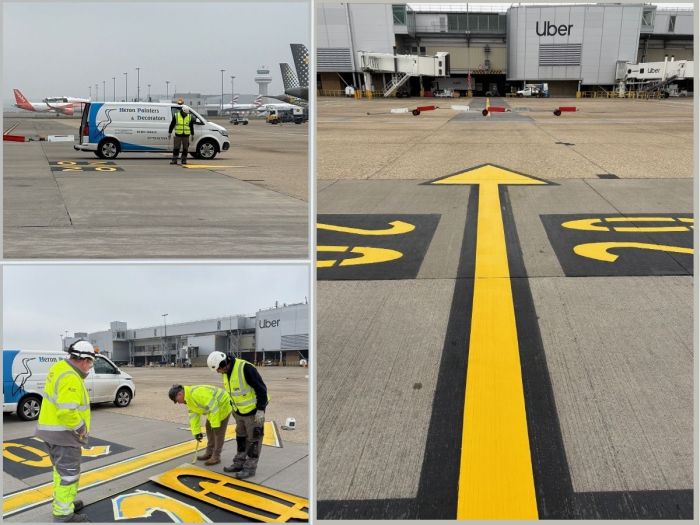 As an approved airside operator, we recently assisted Gatwick Construction Ltd with the reinstatement of taxiway markings on aircraft stands at the South Terminal.