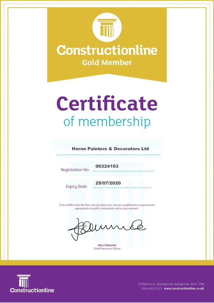 Heron have recently registered with Constructionline, a single point of reference for pre-qualification data for the Construction industry. Yolanda Noye, Director said “This is mutually beneficial to us and potential new clients alike as a central source of easily accessible validation data. All our data is verified including financial information, insurance, experience and Health & Safety credentials.