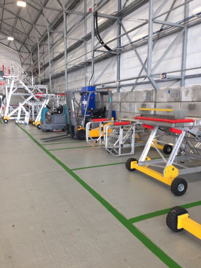 Heron specialise in line marking and were approached by Lufthansa Technik Maintenance to carry out the line marking required within EasyJet Hangar 9 at Gatwick Airport.  Nathan Noye, Director, said “our line marking team is experienced and trained to a high standard which enables them to undertake any indoor or outdoor projects.  For this particular project we used a chlorinated rubber (cold spray) technique for application”.