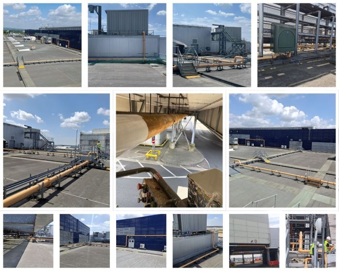 Here’s a glimpse of our latest project: redecorating what feels like an endless gas pipe that winds across the South Terminal roof. It's a unique challenge, especially with some areas being tricky to reach, but our in-house expertise in access solutions ensures we’ll get the job done.