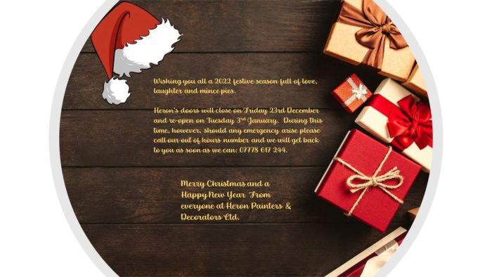 We wish to express our gratitude to all our customers for choosing to do business with Heron during 2019.  We fully appreciate that you have a choice of suppliers and very much value your business.  We look forward to building on our working relationships during 2020 and would like to take this opportunity to wish you a Merry Christmas and a very Happy New Year!